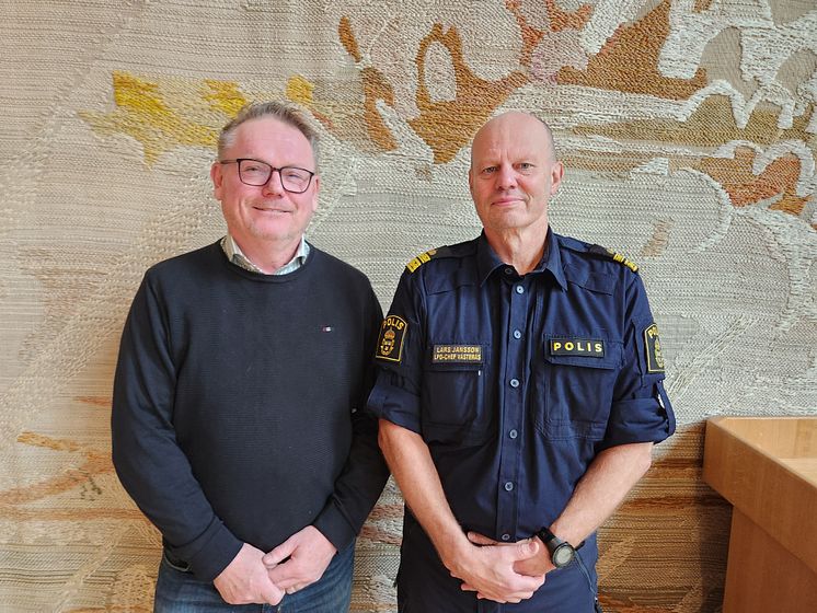 Staffan Jansson (S) kommunstyrelsens ordförande och Lars Jansson, lokalpolisområdeschef Västerås.jpg