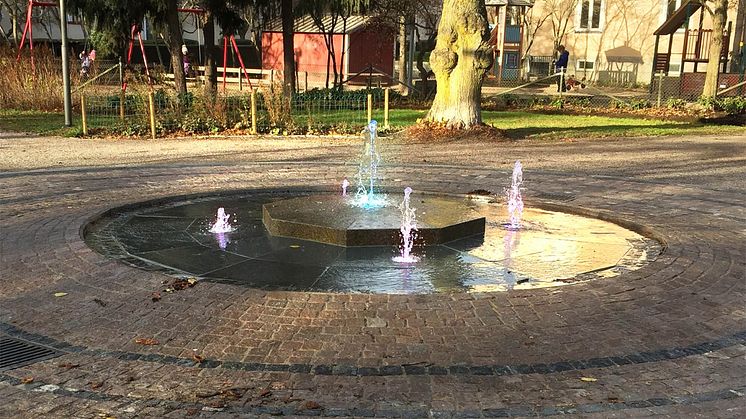 En ny, mer miljövänlig fontän invigs den 7 maj i Rudbecksparken i Västerås. Den gamla fontänen som använde dricksvatten var gammal och utsliten och i stort behov av renovering. Den nya är mer miljövänlig eftersom vattnet återanvänds i ett slutet system.
