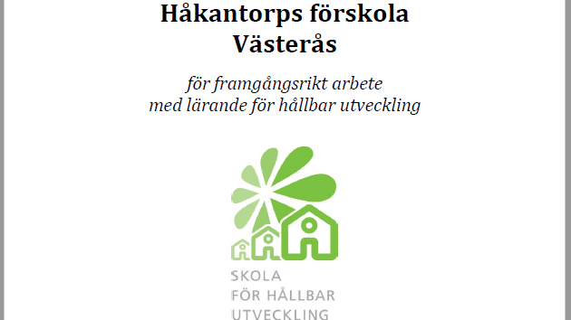 Håkantorps förskola är först ut i Västerås att tilldelas utmärkelsen. Utmärkelsen delas ut av Skolverket till förskolor och skolor som arbetar på ett framgångsrikt sätt med hållbar utveckling. För att få utmärkelsen krävs att verksamheten uppfyller ett antal kriterier och lämnar in en ansökan. De verksamheter som uppvisar kontinuitet i detta arbete med tydlig koppling till styrdokumenten uppfyller också kraven för att få utmärkelsen Skola för hållbar utveckling.