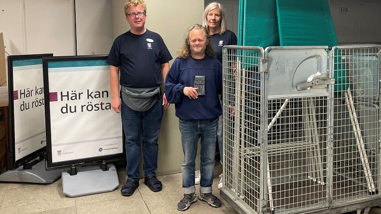 Pontus Nilsson, Robin Suojanen och Jerker Mikkelsen är tre av arbetstagarna inom daglig verksamhet, som jobbar med de praktiska arbetsuppgifterna kopplat till valet.