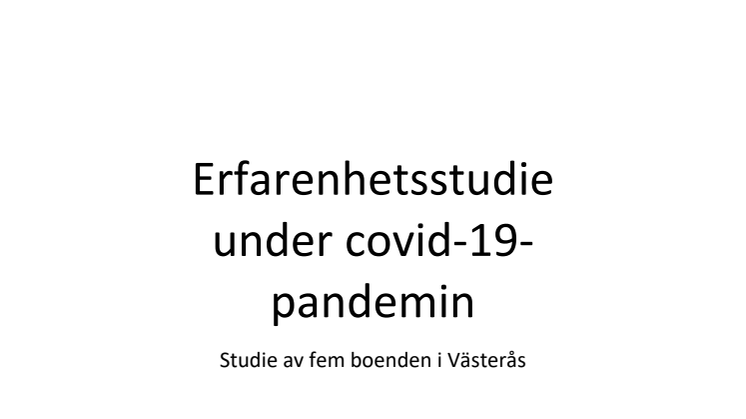 För att dra lärdom av arbetet under covid-19-pandemin så här långt har vård- och omsorgsförvaltningen gjort en erfarenhetsstudie av fem boenden; äldreboendena Ankaret, Rösegården, Pilfinksgården och Tujagården samt Rönnoxelgatans gruppbostad (LSS). Studien omfattar just dessa fem boenden eftersom de har drabbats hårdare av covid-19-smitta än andra enheter inom Västerås. Studien är helt fristående från den fördjupade granskning som Inspektionen för vård och omsorg (IVO) gör av 91 äldreboenden i Sverige.