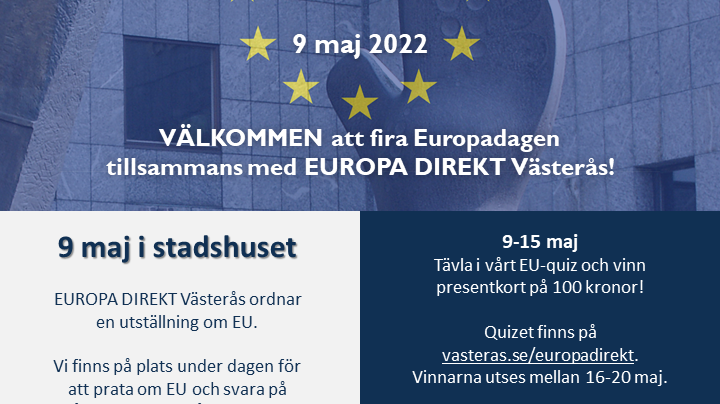 EUROPA DIREKT Västerås firar Europadagen den 9 maj med öppet hus i Västerås stadshus.