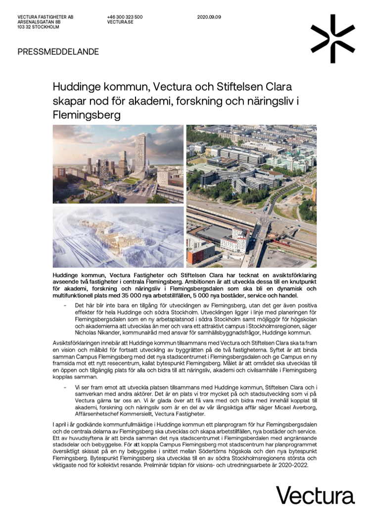 Huddinge kommun, Vectura och Stiftelsen Clara skapar nod för akademi, forskning och näringsliv i Flemingsberg.pdf