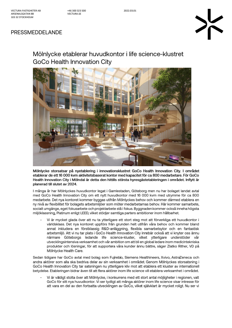 Pressmeddelande_Mölnlycke etablerar huvudkontor i life science-klustret GoCo Health Innovation City.pdf