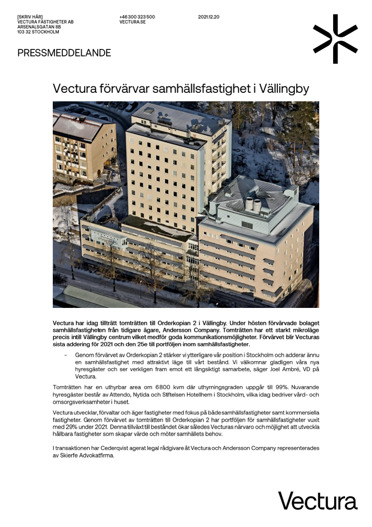 Pressmeddelande_Vectura förvärvar samhällsfastighet i Vällingby.pdf
