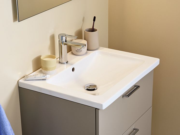 En vacker och välkomnade kombination av badrum och tvättstuga.