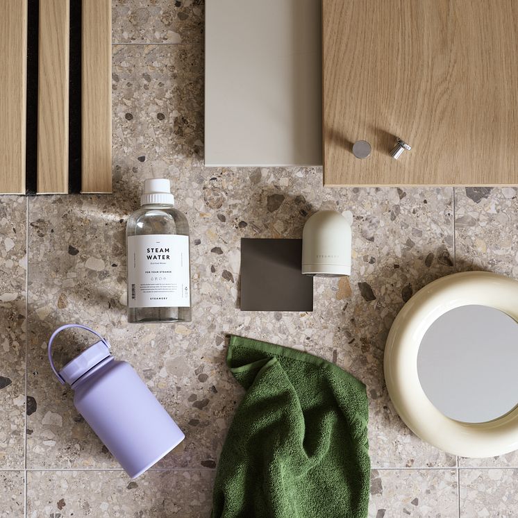 Moodboard för tvättstuga Maja linnebeige och Molly vitpigmenterad ek