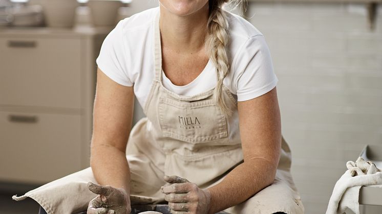 - Känsel: Keramikern Camilla Pahlstad riggade sin drejskiva i en miljö med vår badrumsserie Anno. Där skapade hon ett kit bestående av en tandborstmugg och tvålfat, unikt framtaget för Anno och Vedum.