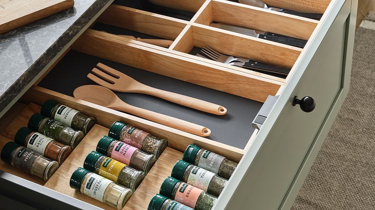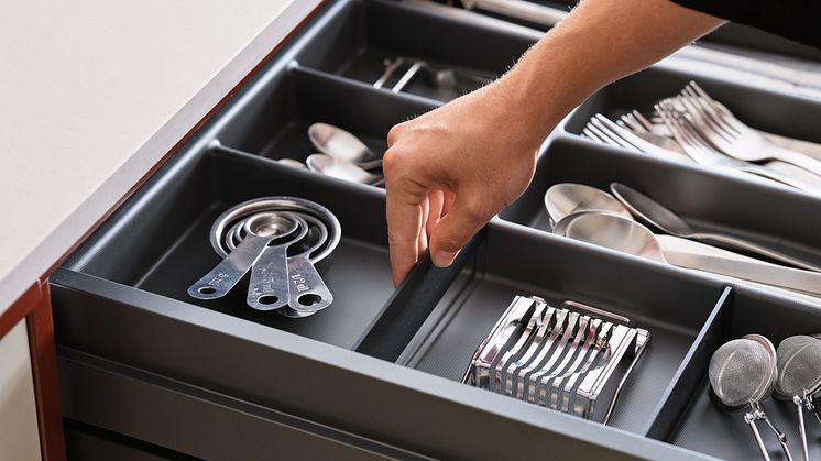 – Principen ”var sak på sin plats” gör det enklare att hålla ordning i kökslådorna. Ju mer du anpassar lådan efter dina behov, desto lättare blir det att undvika oreda. Fundera över vilka saker du använder varje dag – de ska vara lättåtkomliga, säger Jenny Andersson, designansvarig på Vedum Kök & Bad, säger Jenny Andersson, designansvarig på Vedum Kök & Bad.