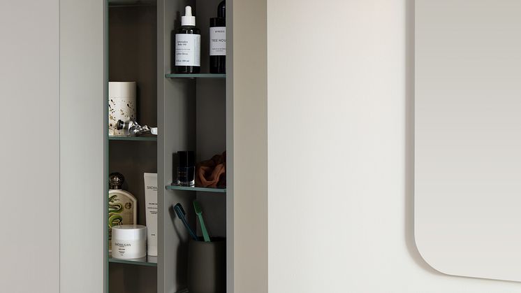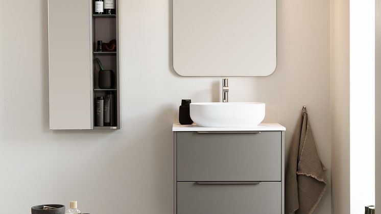 När badrummet spelar allt större roll i våra liv ökar också behovet av praktiska lösningar. Väggskåp som erbjuder massor av smart förvaring, och öppna, inspirerande vägghyllor som både påminner oss om våra favoriter i badrumsskåpet, men ger oss också möjlighet att inreda vackert. Därtill tar speglarna allt större plats. I nya former, och med skräddarsydd belysning, blir speglarna en detalj som höjer känslan i hela rummet. Nyheten Grann, den kvadratiska spegeln med mjuka, rundade hörn är Vedums svar på trenden.