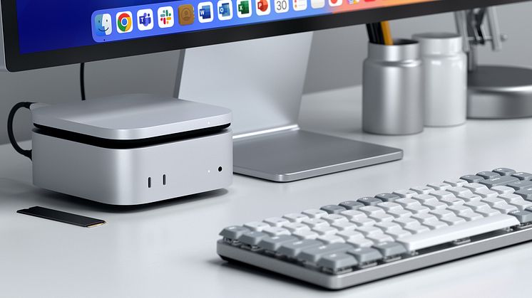USB4 Slim NVMe SSD Enclosure – ett ultraslimmat och stilrent SSD-hölje, för dig som behöver utöka lagringen på din nya Mac mini. Med överföringshastigheter på upp till 40 Gbps via USB4, stöd för flera SSD-format och upp till 8TB kapacitet, är det här ett perfekt verktyg för kreatörer och andra som behöver ordentligt med utrymme, som dessutom är enkelt att ta med och flytta mellan enheter.