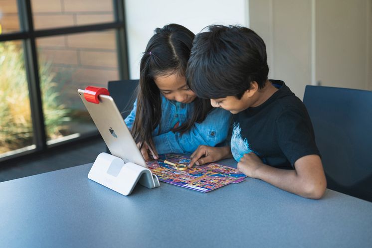 Osmo består av en docka till iPad som möjliggör att skärmen och kameran samarbetar för att visa eller läsa av information. Det skapar en förlängning av verkligheten in i det digitala rummet.