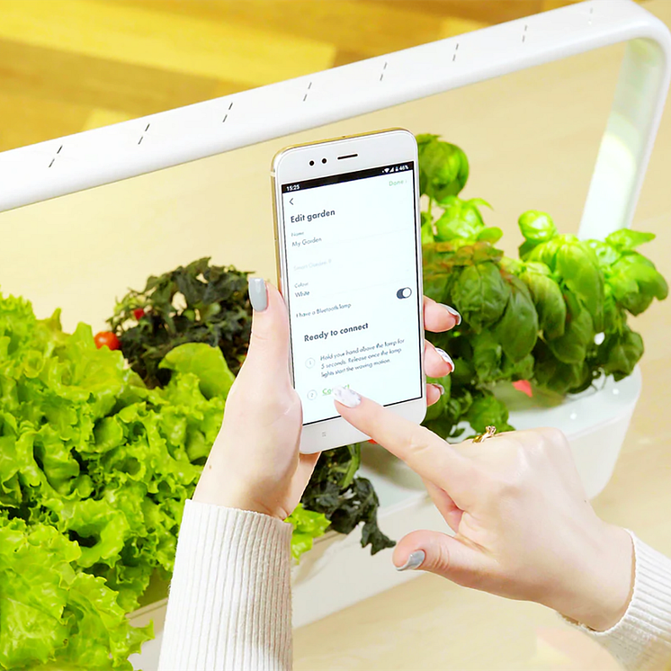 Med nya Smart Garden Pro kan du styra belysningen med både touchkontroll och direkt i Click & Grow-appen via blåtand.