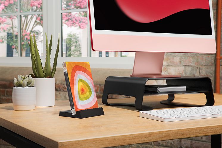 Tavelstativet ger också en bekväm betraktingsvinkel och både telefon och ramdelen går att ha i porträtt- och landskapsläge vilket gör det ultimat för att både ta videosamtal och tjuvtitta på din favoritserie vid skrivbordet.