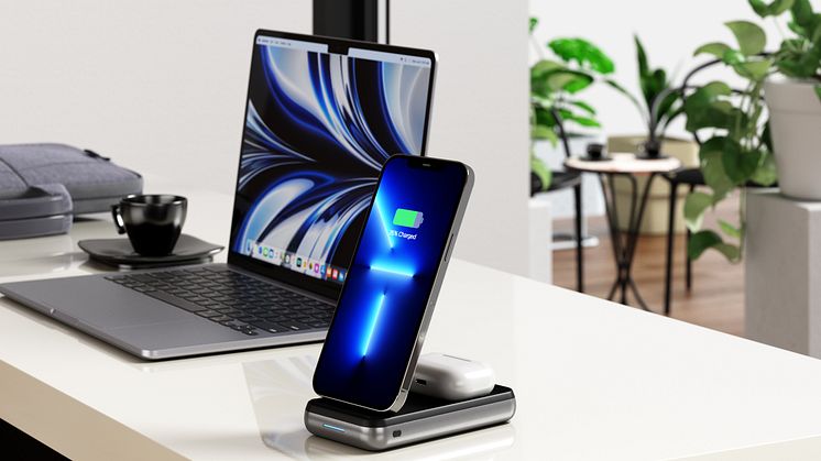 Vendora Nordic som exklusiv distributör av den ledande tillbehörstillverkaren Satechi, presenterar idag den nya powerbanken Duo Wireless Charger Power Stand. Ladda din iPhone upprätt och trådlöst samtidigt som du kan ladda dina AirPods trådlöst och Apple Watch via USB-C.