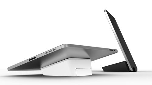 Surfplattan får stabilt stöd och kan betraktas ur två olika vinklar vilket gör det lika bekvämt att surfa och skriva, som att bara titta på skärmen. Detta tack vare den sammangjutna gummikanten, som ger bra grepp, och den utdragbara hållaren.
