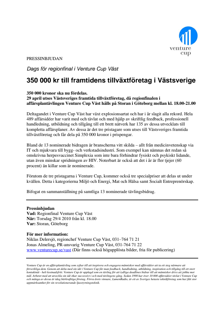 www.venturecup.se/vast (Där finns också högupplösta bilder, fria för publicering)