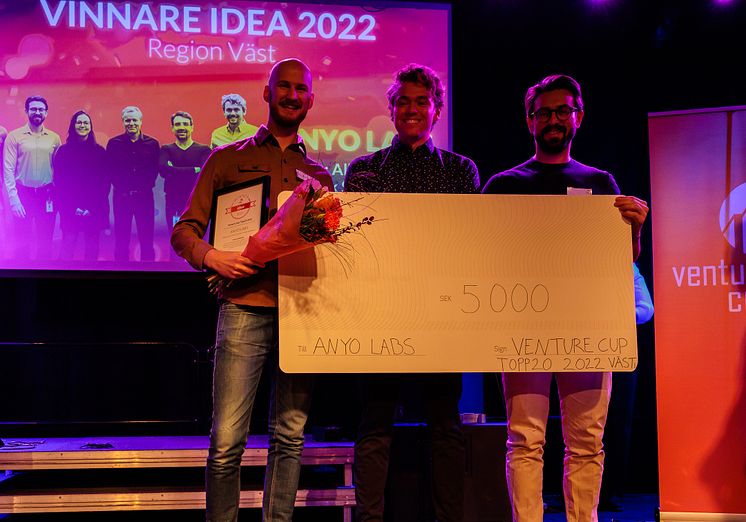 ANYO Labs har utvecklat ett revolutionerande maskinlärnings-verktyg för extremt snabb och träffsäker läkemedelsutveckling. Mjukvaran använder nya metoder, och har utvecklats av erfarna forskare på Göteborgs Universitet inom fysikalisk kemi och teoretisk biokemi. ANYO Labs vann 5 000 kronor på eventet och en plats på den nationella Topp20 listan.