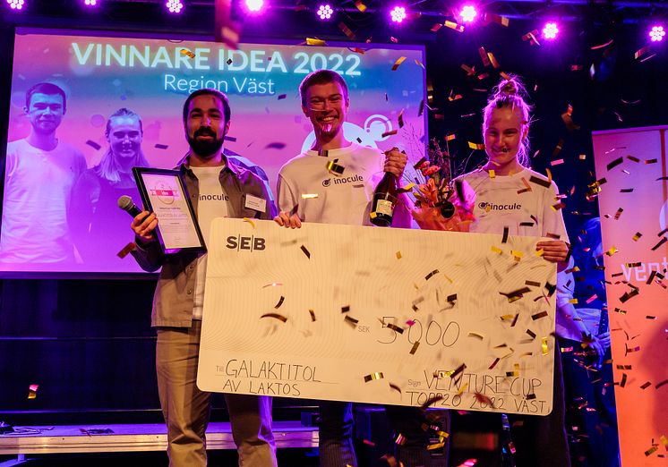 Inocules idé minskar avfall från mejeri industrin samtidigt som vi skapar ett ämne som idag är dyrt resurskrävande att framställningen. Genom att utnyttja tekniken förbättrar man avkastningen, samt minskar kostnaderna och möjliggör användningen av galaktitol i en bredare skala. Inocule vann 5 000 kronor på eventet och en plats på den nationella Topp20 listan.