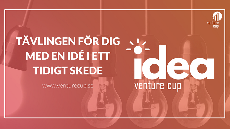 Venture Cup IDEA är tävlingen för alla idéer i ett tidigt skede, det kan vara idén du precis kommit på till en affärsidé som du arbetat med ett tag. Oavsett är Venture Cups IDEA tävling för dig som vill ta din affärsidé till nästa nivå. Tävlingen IDEA 2022 är öppen 30 augusti till 8 november.