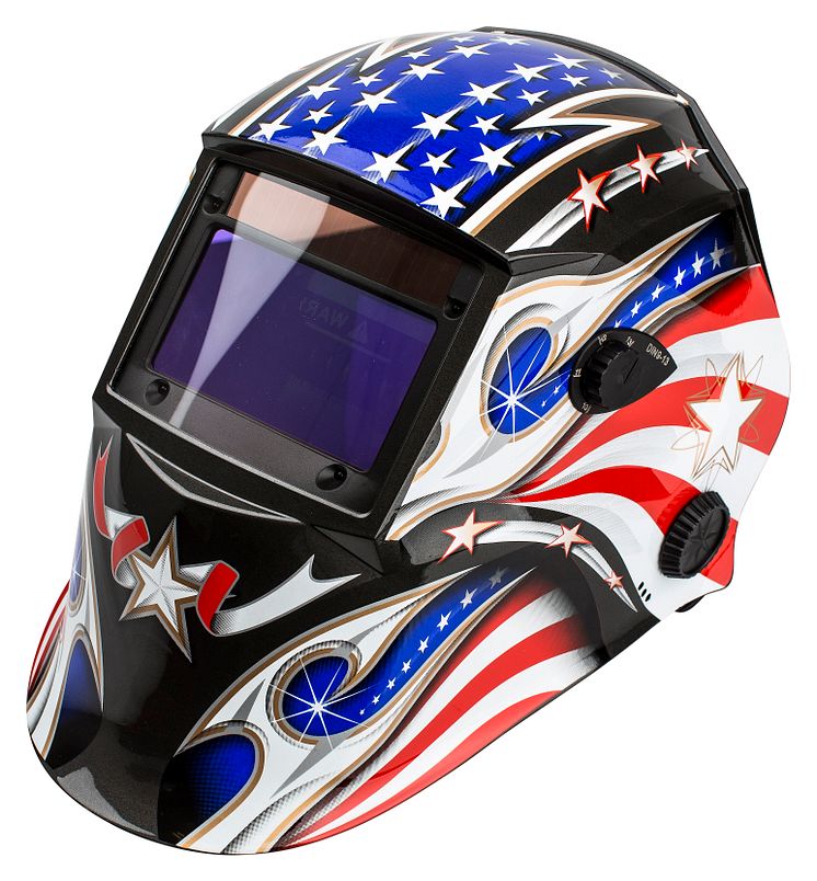 Automatisk motivlackad svetshjälm från Verktygsboden. Hjälmen är solcellsdriven och kan ställas in för att passa alla typer av svetsning. Hjälmen har även slipfunktion.