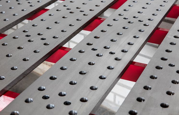 PELA svetsbord, art.nr 495087. Ett stabilt arbetsbord med sex avtagbara plattor som enkelt lossas och flyttas för att passa olika svetsobjekt. Varje platta har dessutom ett hålmönster som gör det lättare att fixera det som ska svetsas – bara stick ner skruvtvingarna i hålen och spänn fast!