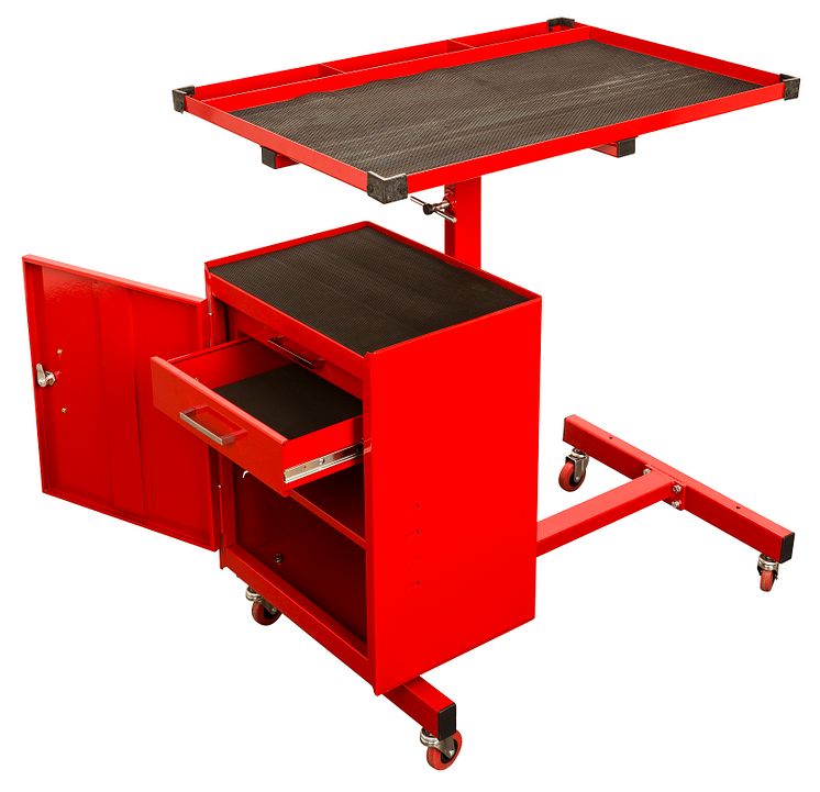 Professionellt mekanikerbord på hjul. Bordet är en praktisk avlastningsyta vid
