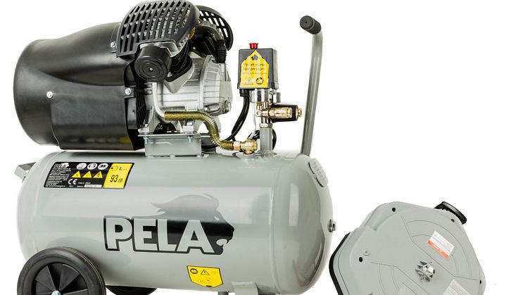Alla borde få ha en kompressor i vår! Unna dig den universala maskinen för alla slags arbetsuppgifter i hemmet och verkstaden. PELA kompressor är en 3-hästars oljesmord kompressor med 50 liters tank, tystgående motor och den stora fördelen att den kopplas till ett vanligt vägguttag. Kompressorn från Verktygsboden har en hög luftkapacitet, lång livslängd och är utrustad med tryckströmbrytare, säkerhetsventil, reduceringsventil samt två manometrar för kontinuerlig övervakning av tanktryck och avgivet tryck. Handtag och hjul gör det enkelt att flytta runt den i arbetet. Kompressorn levereras med två universalkopplingar och olja.