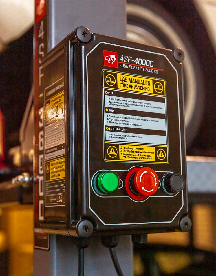 Fakta: Parkeringslyft, fyrpelare, för 4 bilar, PELA Tools