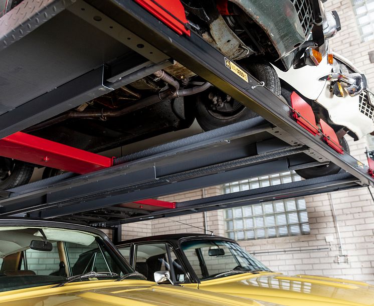 – En stor fördel är att parkeringslyften blir smalare och erbjuder en mer yteffektiv lösning, jämfört med att ha två parkeringslyftar, eftersom man då sparar fyra pelare i mitten. På så vis sparar vår parkeringslyft – med fyra pelare, för fyra bilar – mycket plats, för bilentusiasten och bilsamlaren, säger Lars Edwardsson på Verktygsboden.