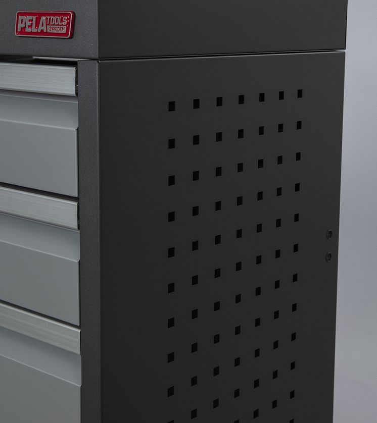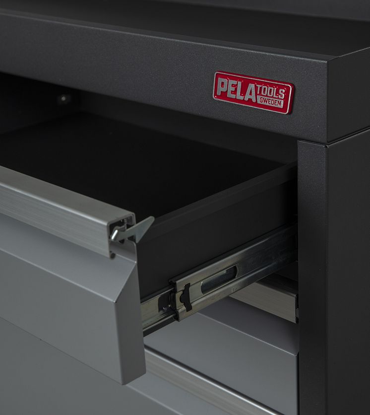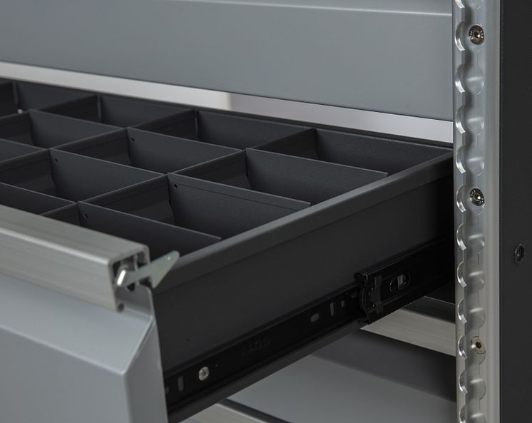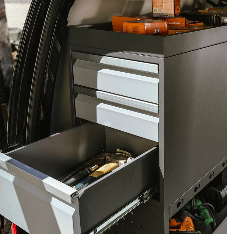 ARTNR 520055 med utdragbara lådor åt två håll, 3st på långsidan och 3st på kortsidan, så man kommer åt verktygen även utifrån bilen.
