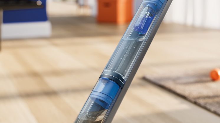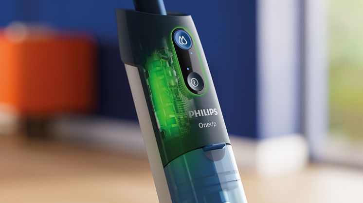 Philips lanserar idag den elektriska moppen OneUp och utmanar därmed det gamla sättet att moppa. Genom sitt patenterade pumpsystem suger OneUp tyst upp smutsigt vatten och fördelar rent vatten på golvet. Något som gör att användaren nu kan moppa med rent vatten, utan att behöva släpa runt på en hink.