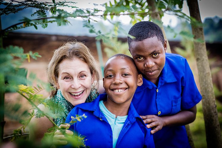 Helen Sjöholm, Jolie Usanzituze och kamraten Clarisse Mutuyimana, 12 – som även hon är med i trädklubben som stöds av Vi-skogen. Båda går i sjätte klass.