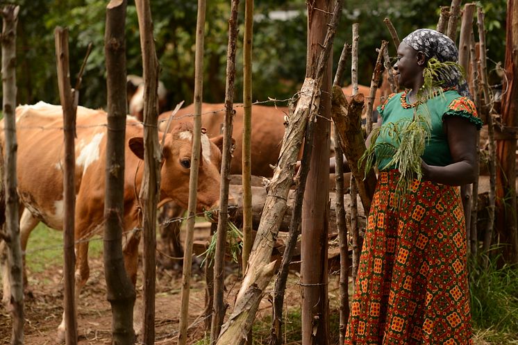 Mjölkbonden Margaret Muchanga, en av de bönder som kommer att nås av investeringen genom att få utbildning i hållbart jordbruk och trädplantering.