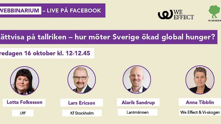 Fredagen 16 oktober, kl 12-12.45 på We Effect och Vi-skogens Facebook: https://fb.me/e/1zSOZR7aa