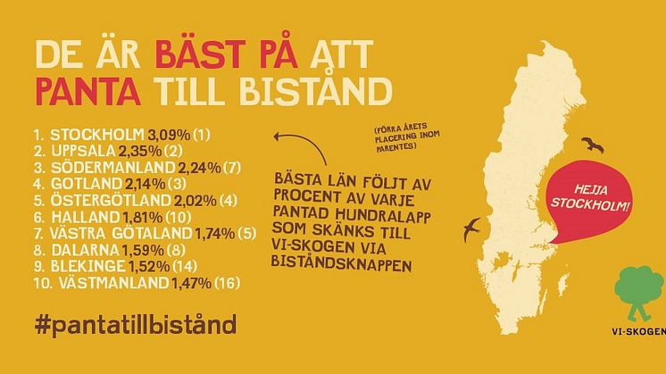 Mest givmilda med pantpengarna i Jämtland är Östersundsborna. Tillsammans skänkte invånare i Jämtland 112 292 pantkronor, motsvarande 5 615 träd nya träd i Afrika. Det visar Vi-skogens årliga pantrankning av Biståndsknappen hos Coop.