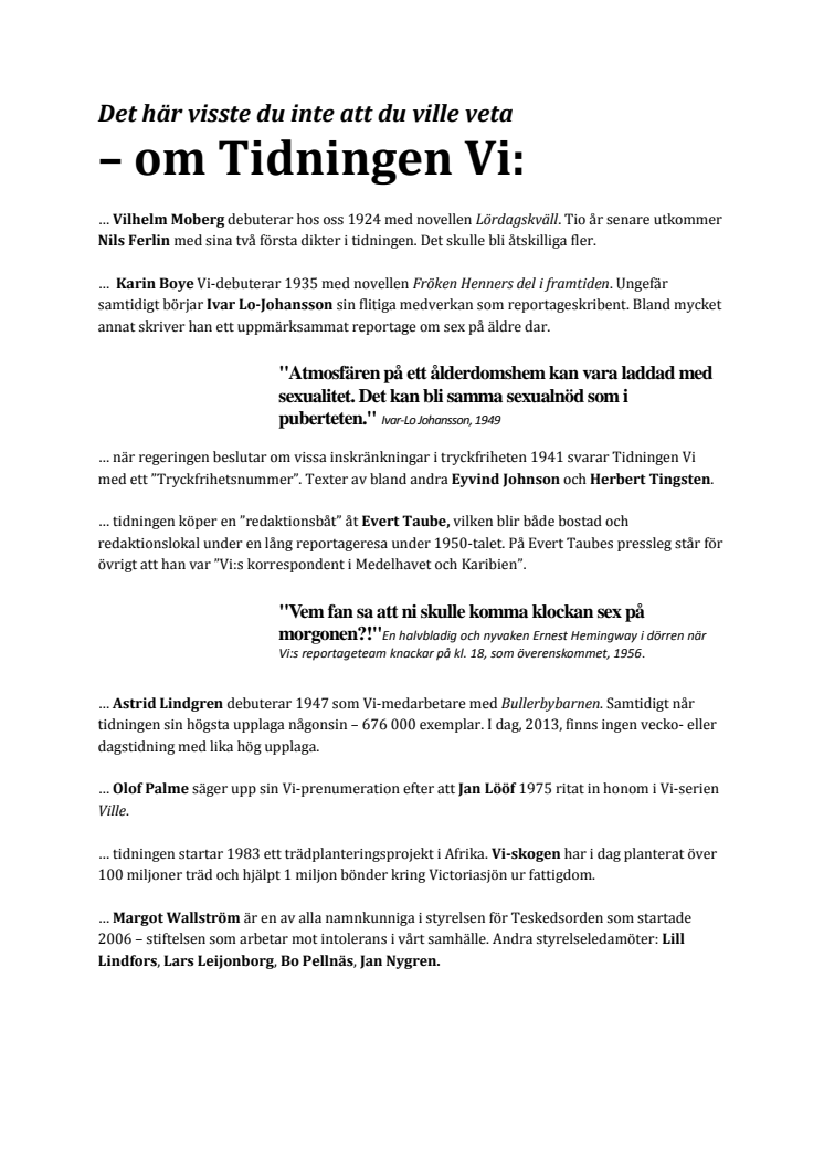 Innehållet får laddas ner, användas och delas i olika mediekanaler av t.ex. journalister, bloggare, krönikörer, opinionsbildare etc., i syftet att förmedla, redogöra för och kommentera ert pressmeddelande, inlägg eller information, så länge innehållet används oförändrat och i dess helhet. Upphovsmannen ska anges i den omfattning och på det sätt god sed kräver (vilket bl.a. innebär att fotografer till bilder nästan alltid måste anges).