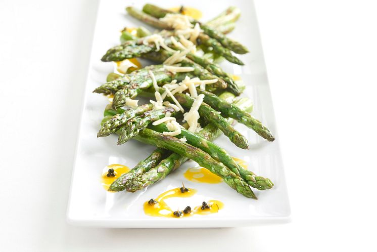 Hällstekt grön sparris, en av Rosella Grönskar-rätterna som ingår i buffén.