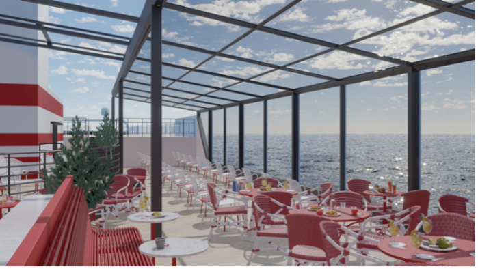 Under 1960-talet tillbringades vackra sommardagar i hopfällbara däcksstolar – men vid kallt eller dåligt väder ville ingen vistas på soldäcket. Viking Glorys Viking Terrace är en kombination av en takrestaurang och uteservering - den första i sitt slag på Östersjön. Tack vare inglasning och infravärmare har Viking Terrace sommarsäsong från tidig vår till sen höst. På Viking Terrace bjuds det på frukost, grilldelikatesser och musik i världens vackraste skärgård.