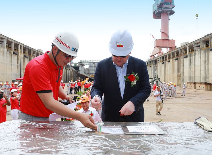 År 2021 kommer en helt ny kryssningsupplevelse till Östersjön när Viking Line lanserar sitt nya, klimatsmarta fartyg Viking Glory. Fartyget som kommer att gå varje kväll från Stadsgården i Stockholm till Åbo i Finland och tillbaka, byggs just nu i Xiamen i Kina. Idag har fartygsbygget nått en avgörande milstolpe med den officiella kölsträckningsceremonin. Rederiets vd Jan Hanses har tillsammans med medlemmar ur koncernledningen och representanter för varvet under högtidliga former placerat ett tiotal euromynt och kinesiska yuanmynt i olika valörer under Viking Glorys köl.