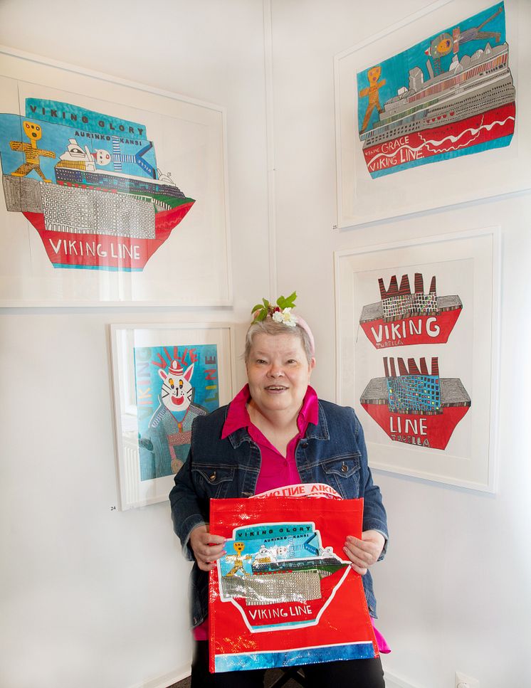 - För specialkonstverksamheten är det här projektet med Viking Line en otroligt fin sak. Att kombinera konst med shoppingkassar är redan i sig en fantastisk idé. Att Viking Line har beställt konstverk av Tiina Elina Nurminen är glädjande också för andra konstnärer som behöver stöd, och ger dem tro på sitt eget arbete. Personer som behöver stöd får sällan sin röst hörd i samhället. Konsten är en viktig uttryckskanal för dem, och konststudiornas betydelse i det här sammanhanget är oersättlig, säger Sirpa Taulu, verksamhetsledare på intresseorganisationen för specialkonstverksamhet Kettuki rf.