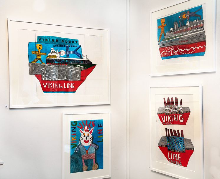 Konstnären Tiina Elina Nurminens verk som beskriver kryssningens fröjder når en stor publik genom att pryda shoppingkassarna i Viking Lines taxfreebutiker. På beställningskonstverken har outsiderkonstnären som älskar kryssningar förevigat det nya fartyget Viking Glory och skeppskatten Ville Viking. Originalverken ställs ut på konstnärens utställning i Aboa Vetus Ars Nova i Åbo från och med den 16 juni.