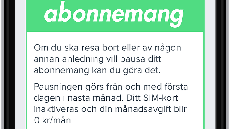 Under tiden paustjänsten är aktiverad blir månadsavgiften 0 kr/mån. En sparsam funktion inför resa eller säsongsarbete, när