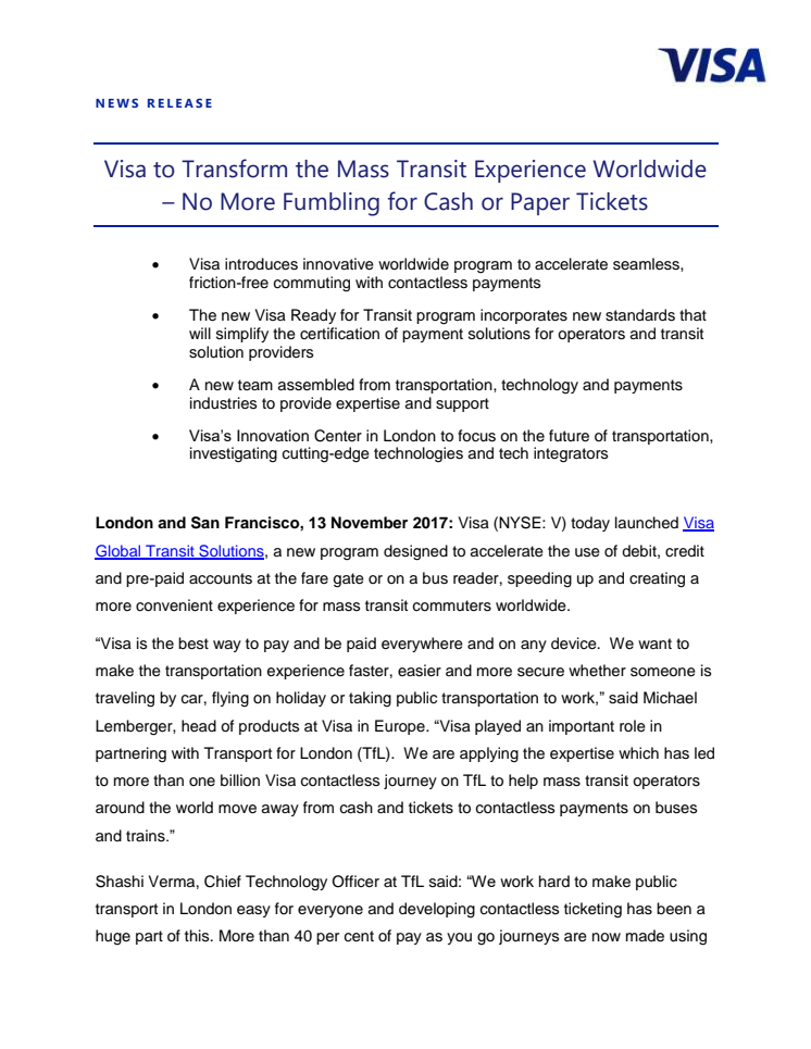 Visa omvandlar världens kollektivtrafik – inget mer fumlande med kontanter eller pappersbiljetter