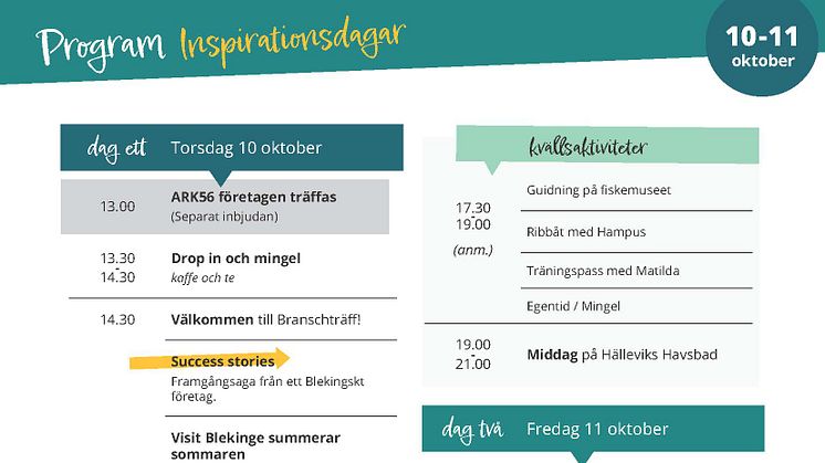 Inspirationsdagarna arrangeras av Visit Blekinge i samverkan med Region Blekinge, Blekinge Arkipelag och länets kommuner.