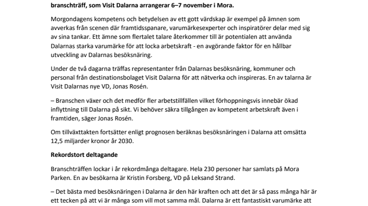 • Dalarnas besöksnäring kraftsamlar mot gemensamma mål