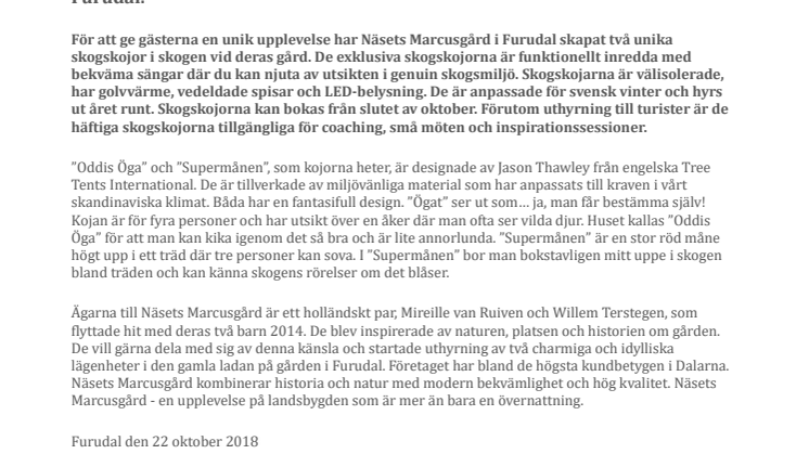 • Skogskojan Oddis Öga på Näsets Marcusgård i Furudal, Dalarna