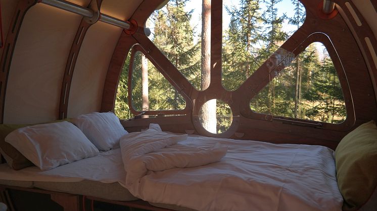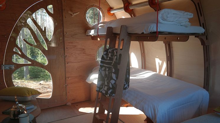 • Interiör skogskojan Oddis Öga på Näsets Marcusgård i Furudal, Dalarna.