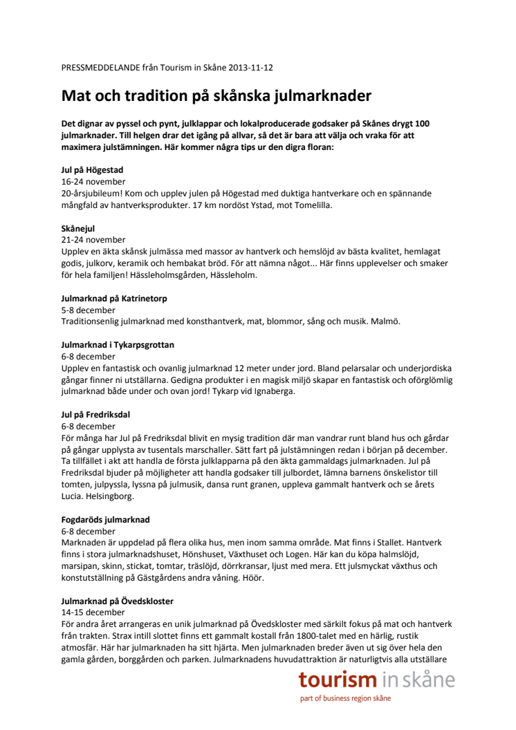 Det dignar av pyssel och pynt, julklappar och lokalproducerade godsaker på Skånes drygt 100 julmarknader. Till helgen drar det igång på allvar, så det är bara att välja och vraka för att maximera julstämningen. Här kommer några tips ur den digra floran: