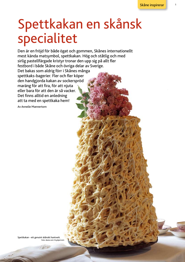 Den är en fröjd för både ögat och gommen, Skånes internationellt mest kända matsymbol, spettkakan. Annelie Mannertorn berättar om detta bakverks ursprung och hur den bäst avnjuts. Annelie är frilansjournalist, ekonom och konsult och med ett hjärta som särskilt klappar för mat & dryck i Skåne.
